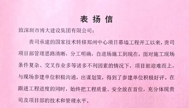 博大榮譽 | 以優質履約贏得三方表揚