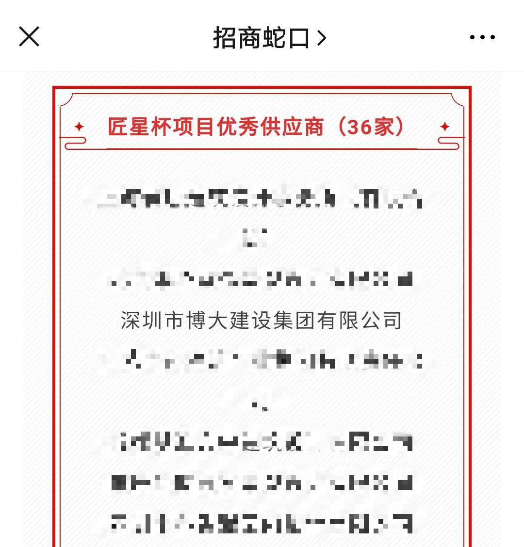 博大建設集團作為招商蛇口的長期合伙伙伴,繼獲得“2018年度優(yōu)秀新供應商”后,再次榮獲“匠星杯項目優(yōu)秀供應商”稱號。