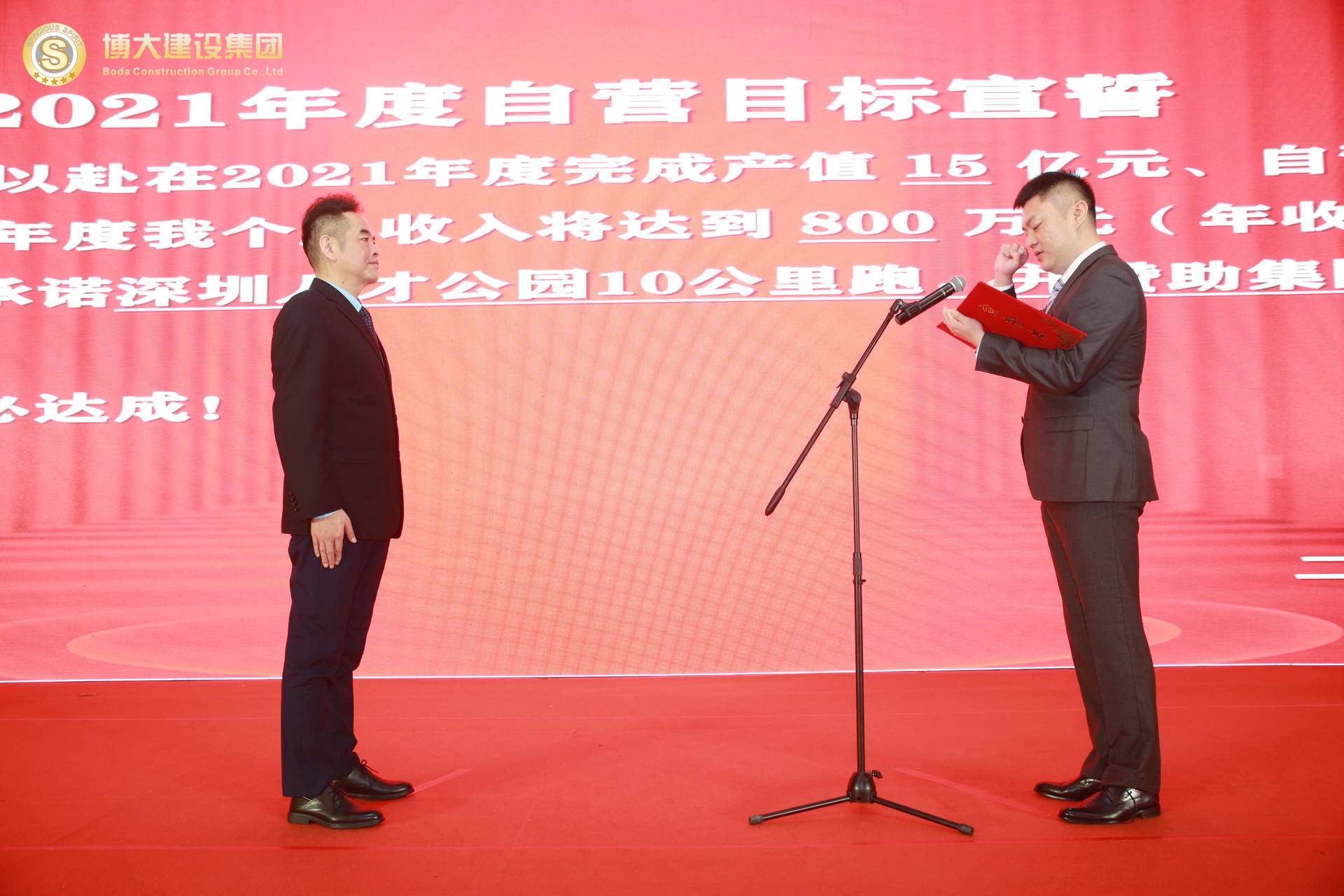 各戰(zhàn)區(qū)、中心、工廠負(fù)責(zé)人逐一上臺(tái),在全體合伙人的見(jiàn)證下對(duì)2021年的部門(mén)目標(biāo)和個(gè)人收入目標(biāo)莊嚴(yán)宣誓,洪董代表集團(tuán)對(duì)股東宣誓!